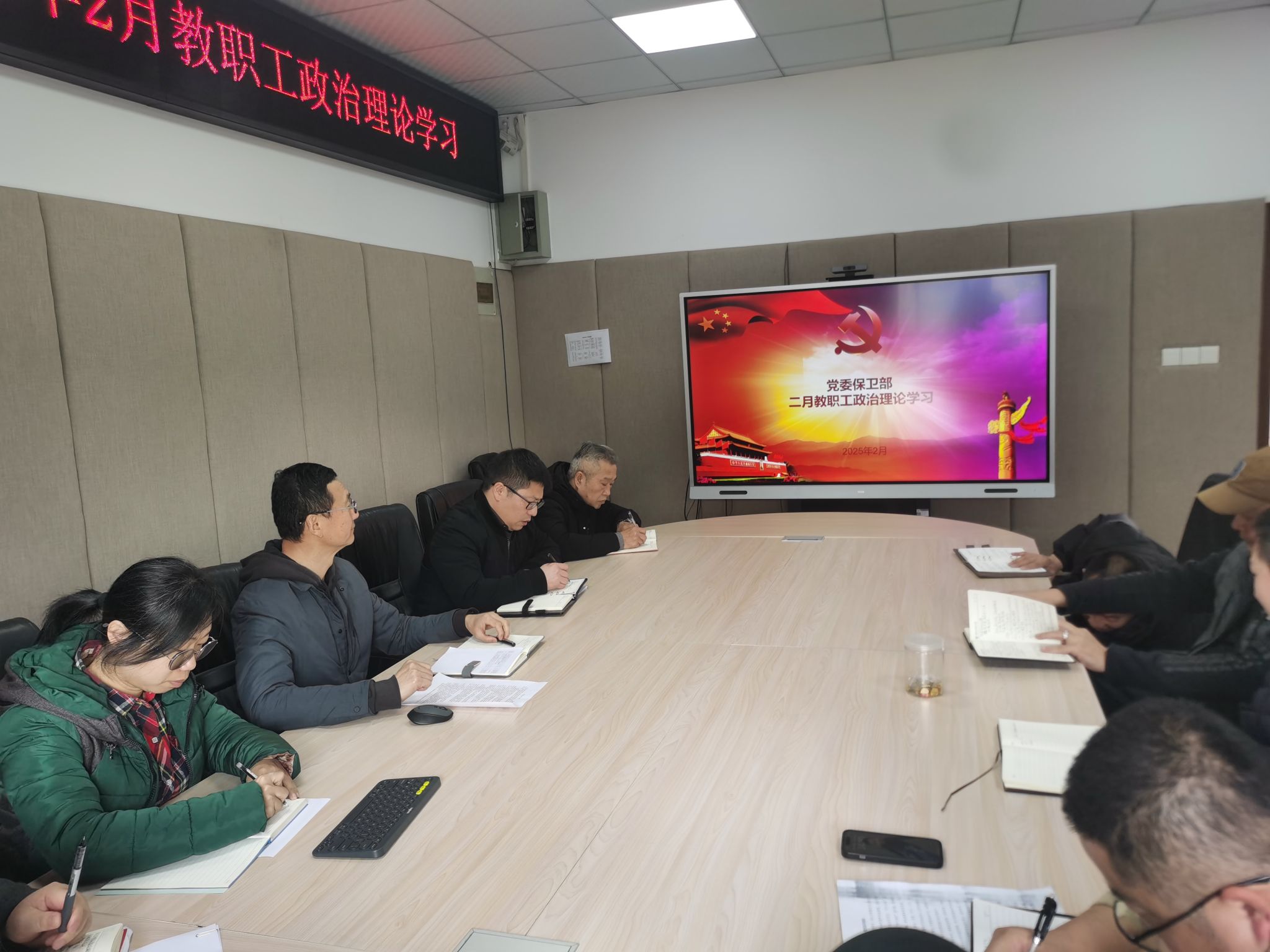 2025年2月27日,党委保卫部在博德楼B303会议室开展二月教职工政治理论学习,全体人员参加,处长谯新风同志主持本次学习。会议组织学习了习近平总书记有关重要讲话重要指...