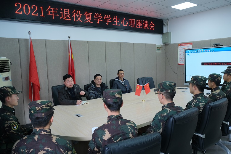 为进一步做好退役复学大学生心理健康工作,2021年11月30日,校人民武装部邀请心理咨询中心秦韬老师为退役复学大学生开展了一场生动的心理座谈会,这是人民武装部对2021...