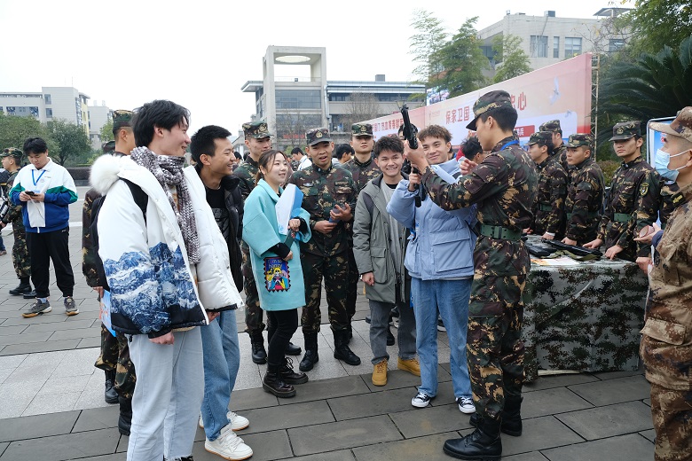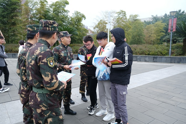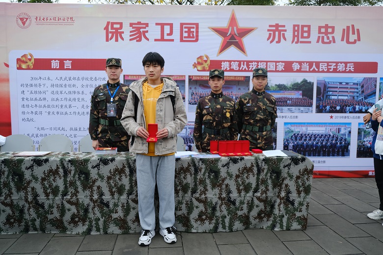 为鼓励在校大学生积极参与应征入伍,增强部队现代化建设,为国家繁荣复兴奠定坚实基础,2021年12月17日上午,重庆电子工程职业学院人民武装部在学子广场举行了以“参军报国,无上光荣”为主题的征兵宣传活动。