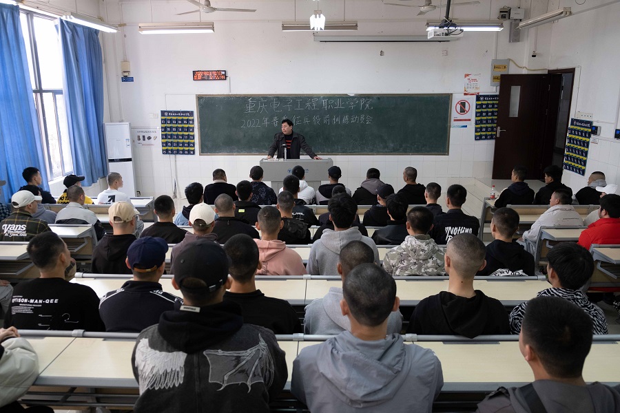 为贯彻落实上级预定新兵役前教育训练指示精神,确保为部队输送优质兵源。3月7日下午,重庆电子工程职业学院人民武装部召开2022年春季征兵役前训练动员会,全校共72名预定新兵参会。人民武装部谯新风部长对我校预定新兵役前训练作了动员指示和安排。