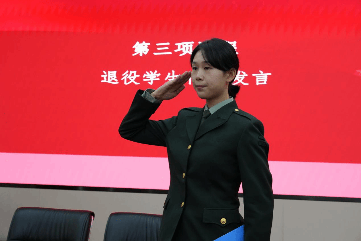 首先由退役复学学生代表罗玉梅代表2025年度全体春季退役复学学生进行发言。她表示会努力学习,以军人的标准时刻要求自己。