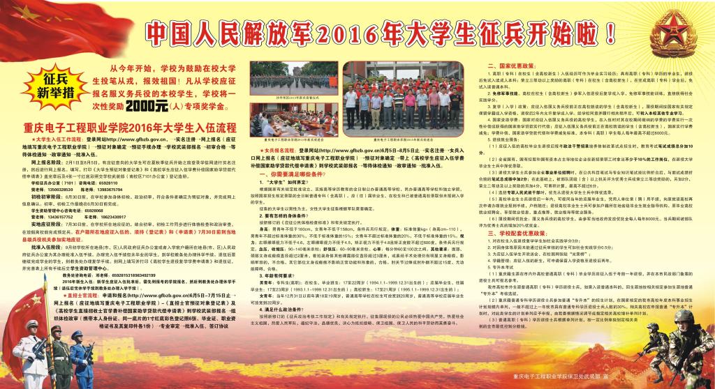 重庆电子工程职业学院大学生征兵流程及优惠政策宣传