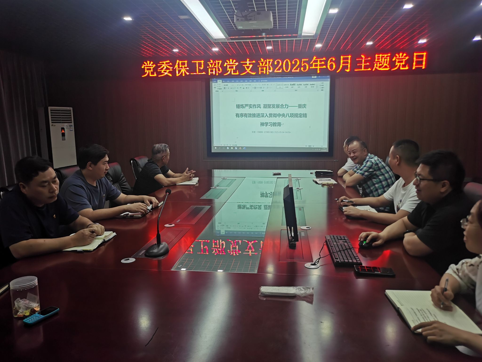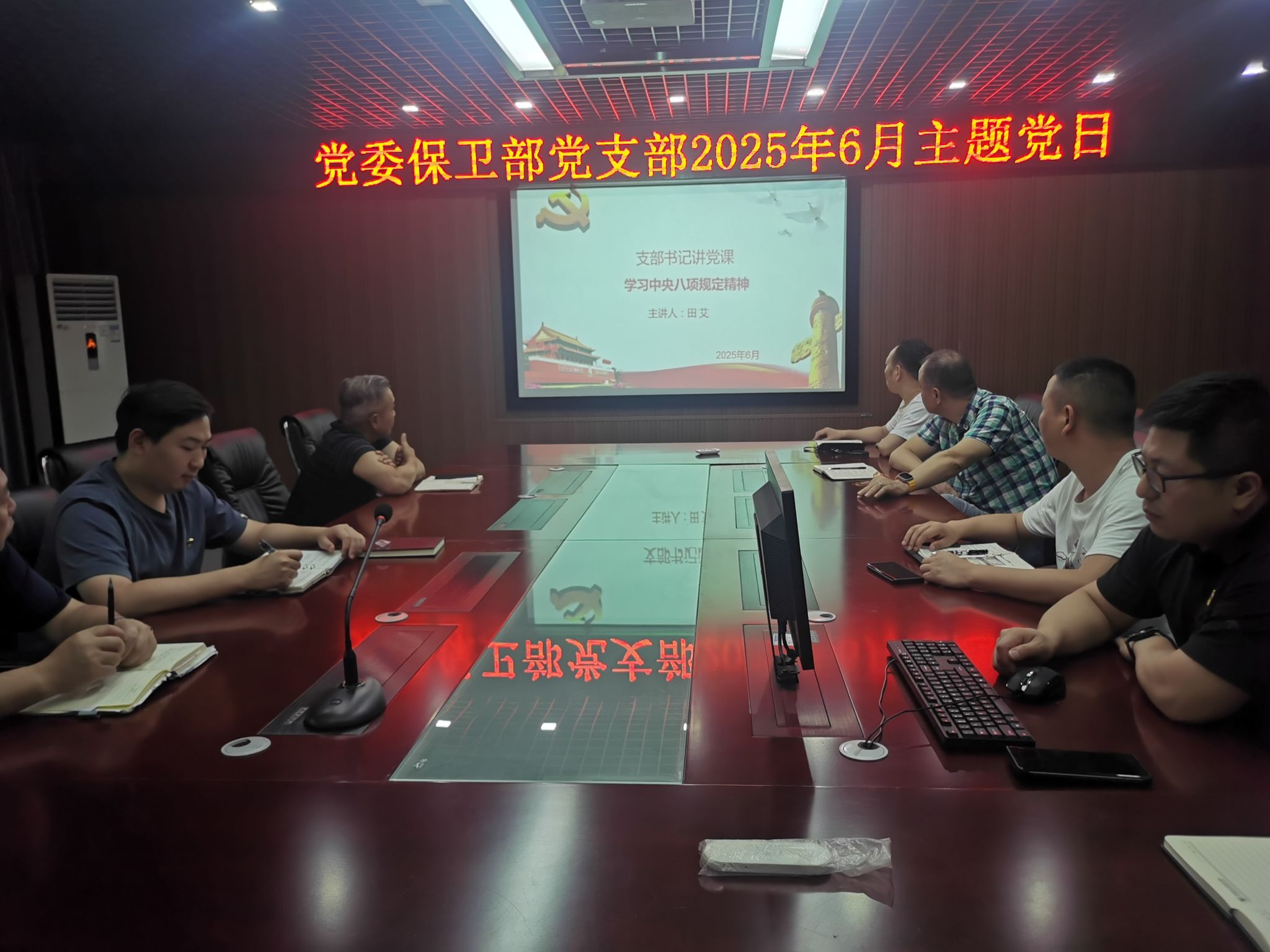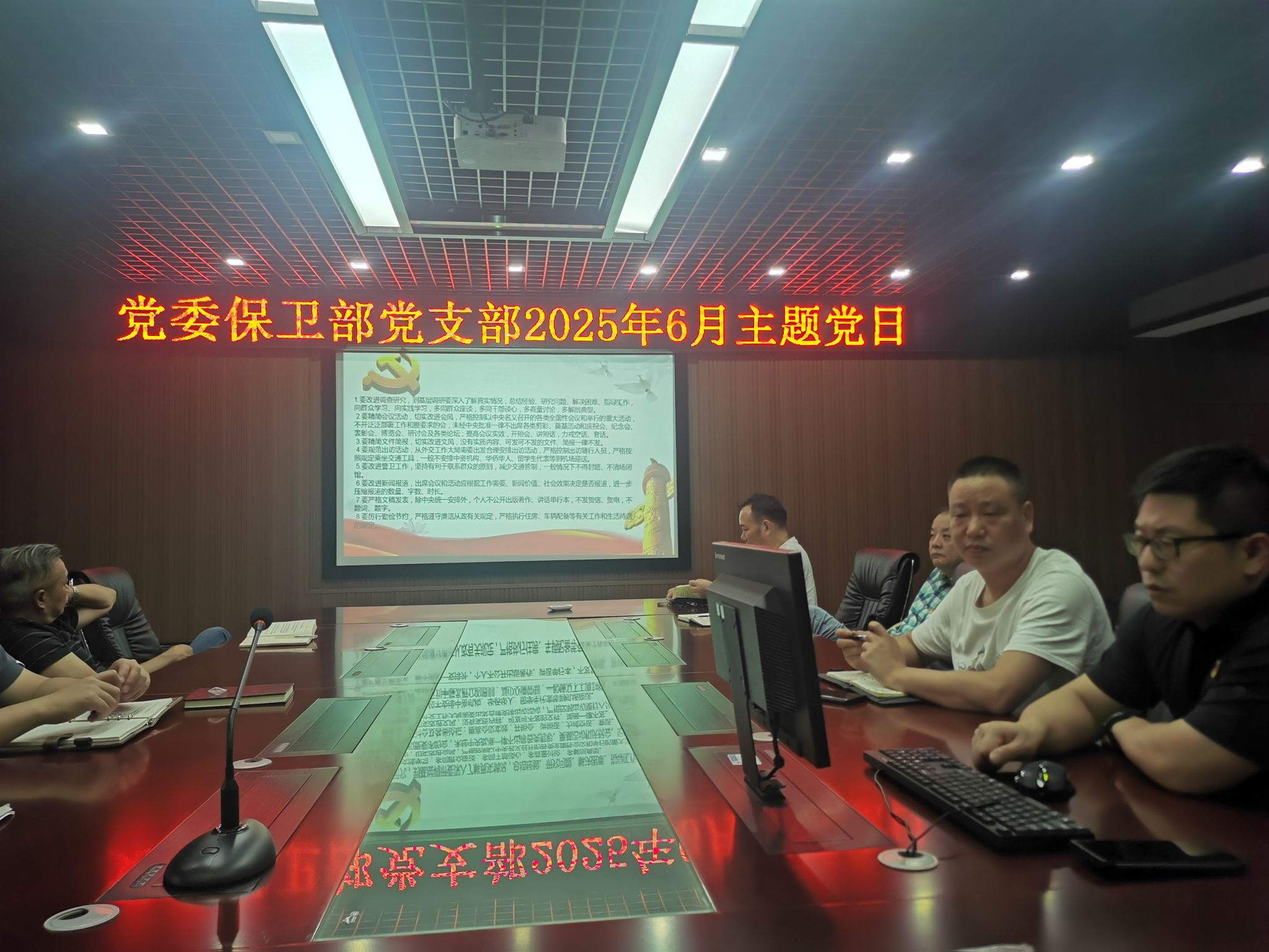2025年6月19日,党委保卫部党支部在监控中心研判室开展六月主题党日活动,全体党员参加。本月主题党日活动主题为“强化党性修养,锤炼忠诚品质”。