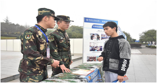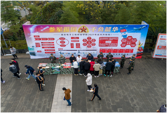 2021年,重庆市征兵采取一年两征的方式进行。为做好此次征兵宣传工作,积极营造浓厚校园崇军氛围,人民武装部还派出迷彩青年工作站站员(退役学生)先生说法。征兵宣传采取大型行架展示、悬挂宣传标语、现场解答、发放传单、LED视频播放征兵宣传片等多种形式进行,确保参军优惠政策传递到全校每一个学生。通过宣传进一步普及征兵政策,强化大学生国防观念,激发大学生积极献身国防事业的热情。