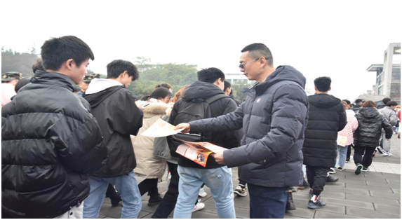 2020年12月31日上午,人民武装部、党委学生工作部在学子广场开展了以“参军报国、不负韶华”为主题的征兵宣传启动仪式。副校长谢义华、黄爱明亲临现场开展征兵宣传。