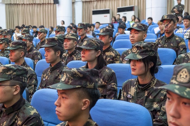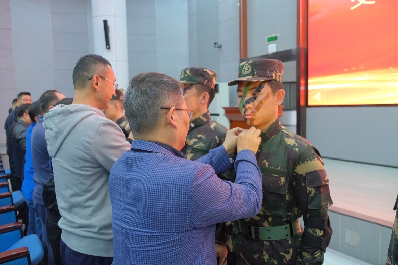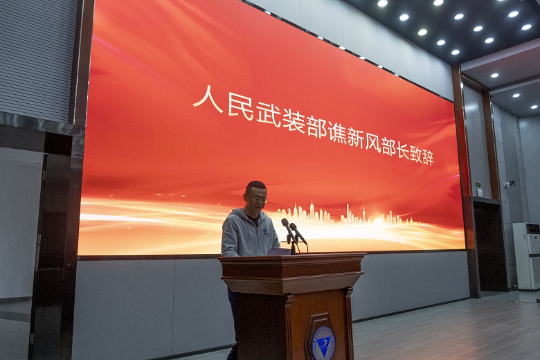 人民武装部部长谯新风致辞,今年是中国共产党建党100周年,正是在中国共产党的正确领导下,中华民族才健步走在民族复兴的伟大征程上,大家要牢记自己曾经的军人身份,要始终坚持党的绝对领导,勇担使命,扎实工作。第三届平安校园服务队队长陈壹灵和迷彩青年工作站站长黄悦朗分别发言,分享了收获和感想,并希望下一届全体队员继续努力,不负众望。