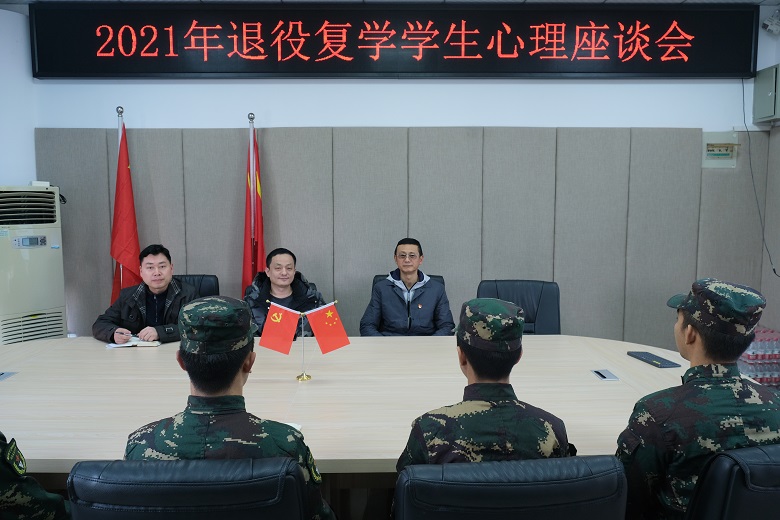 为进一步做好退役复学大学生心理健康工作,2021年11月30日,校人民武装部邀请心理咨询中心秦韬老师为退役复学大学生开展了一场生动的心理座谈会,这是人民武装部对2021年退役复学学生开展的第二次专题心理座谈会。
