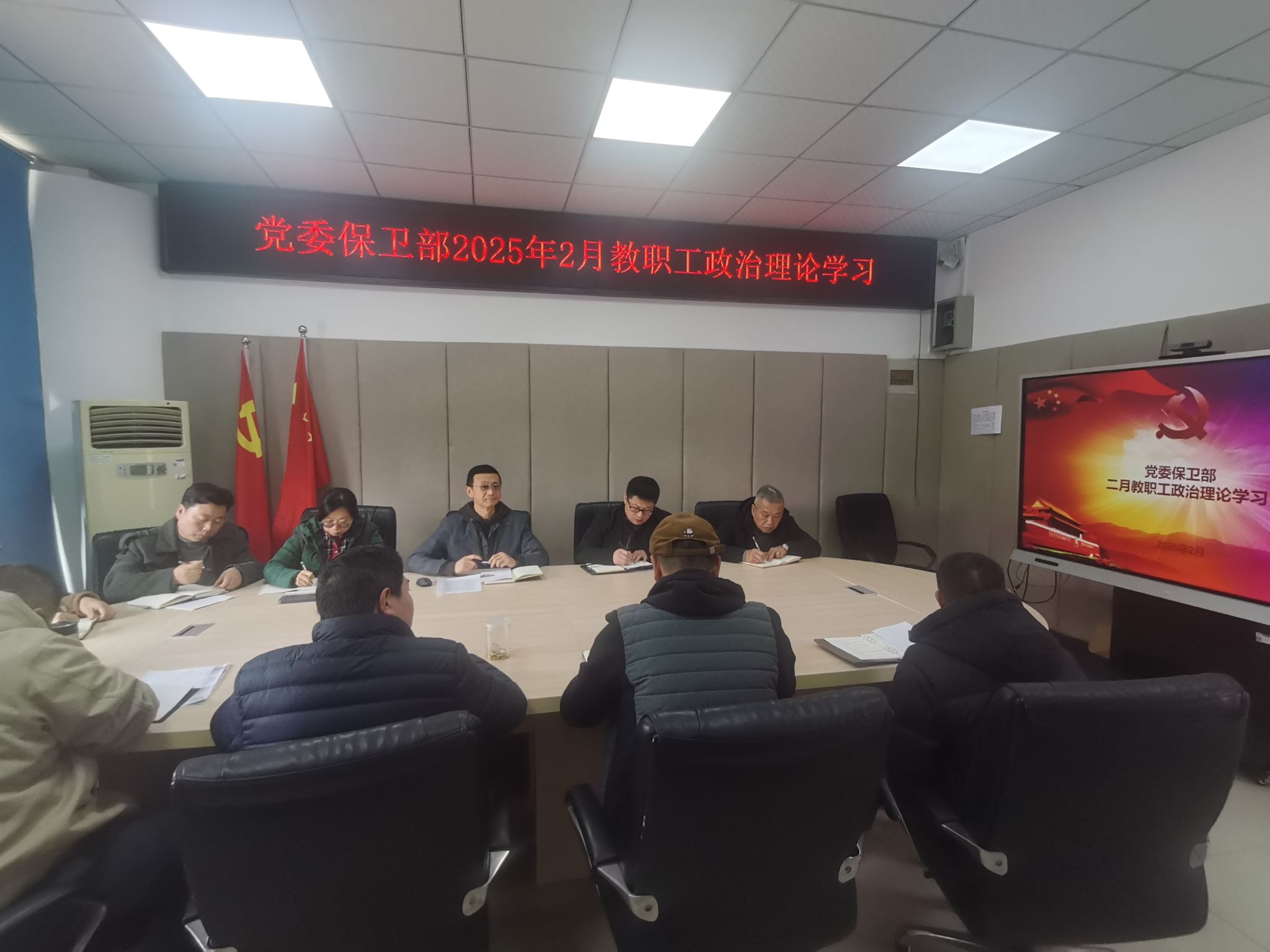 2025年2月27日,党委保卫部在博德楼B303会议室开展二月教职工政治理论学习,全体人员参加,处长谯新风同志主持本次学习。